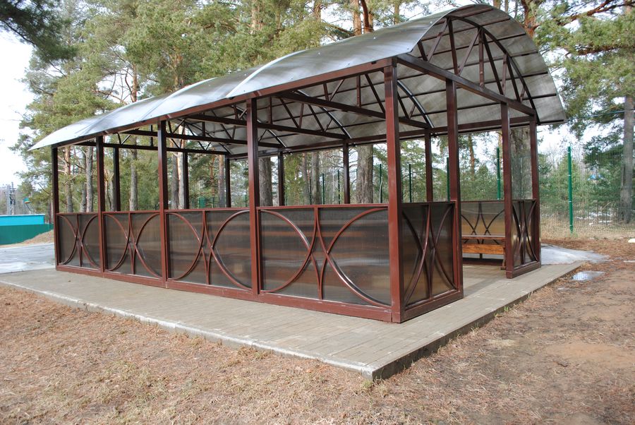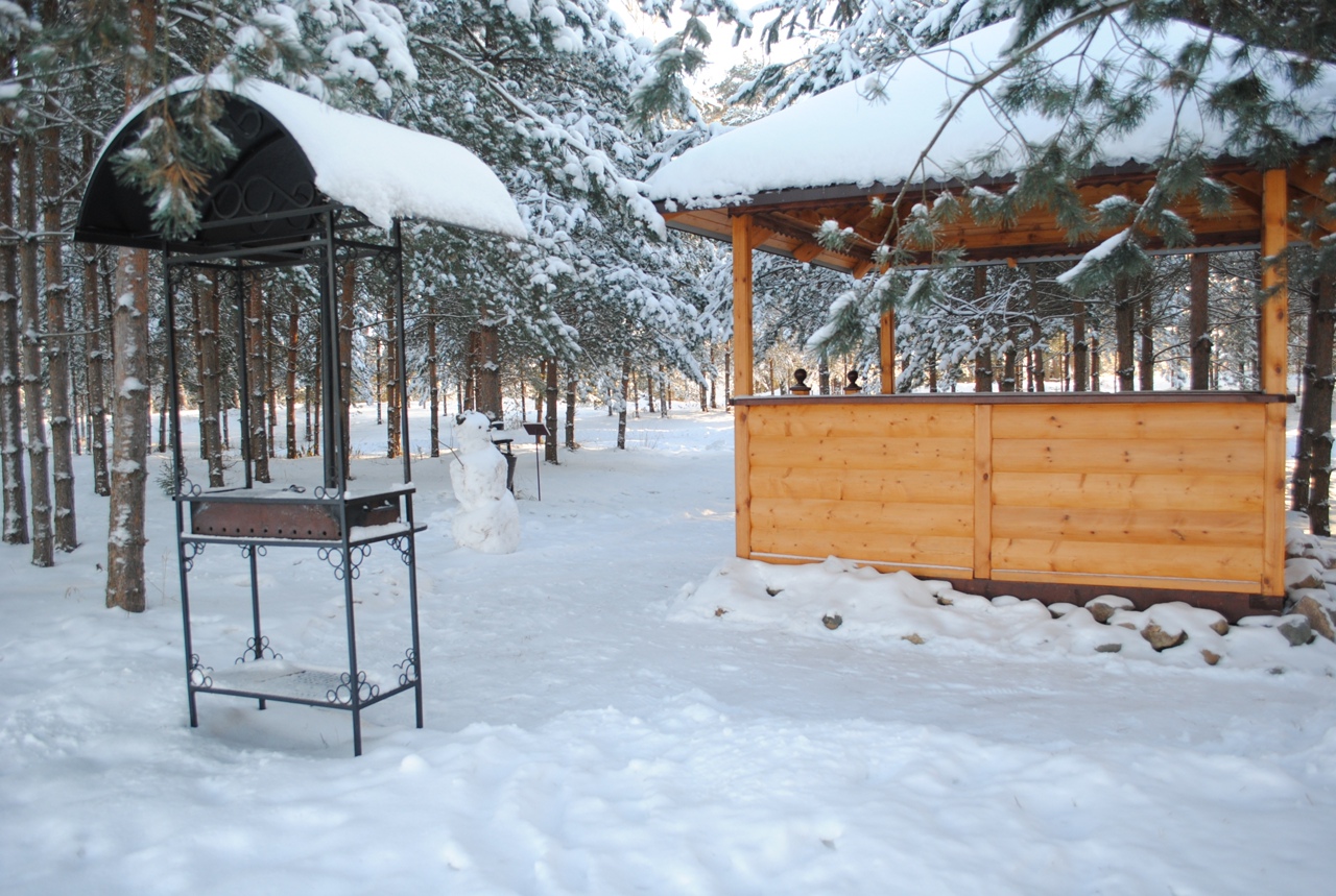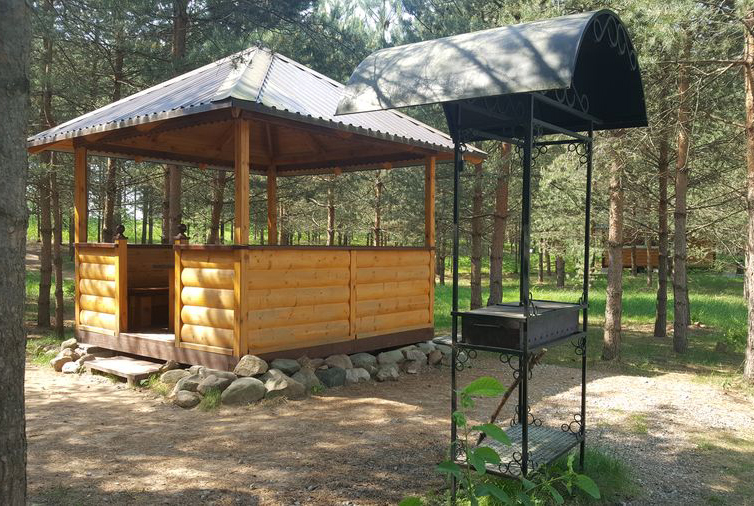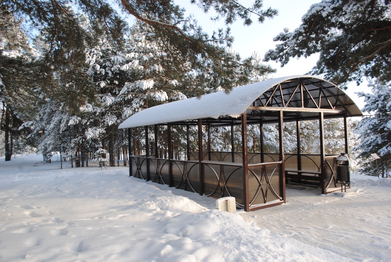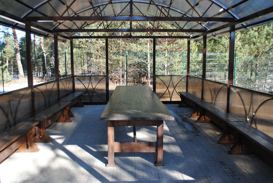 Оснащение: стол, лавки, мангал, розетки, освещение, обогреватель.
